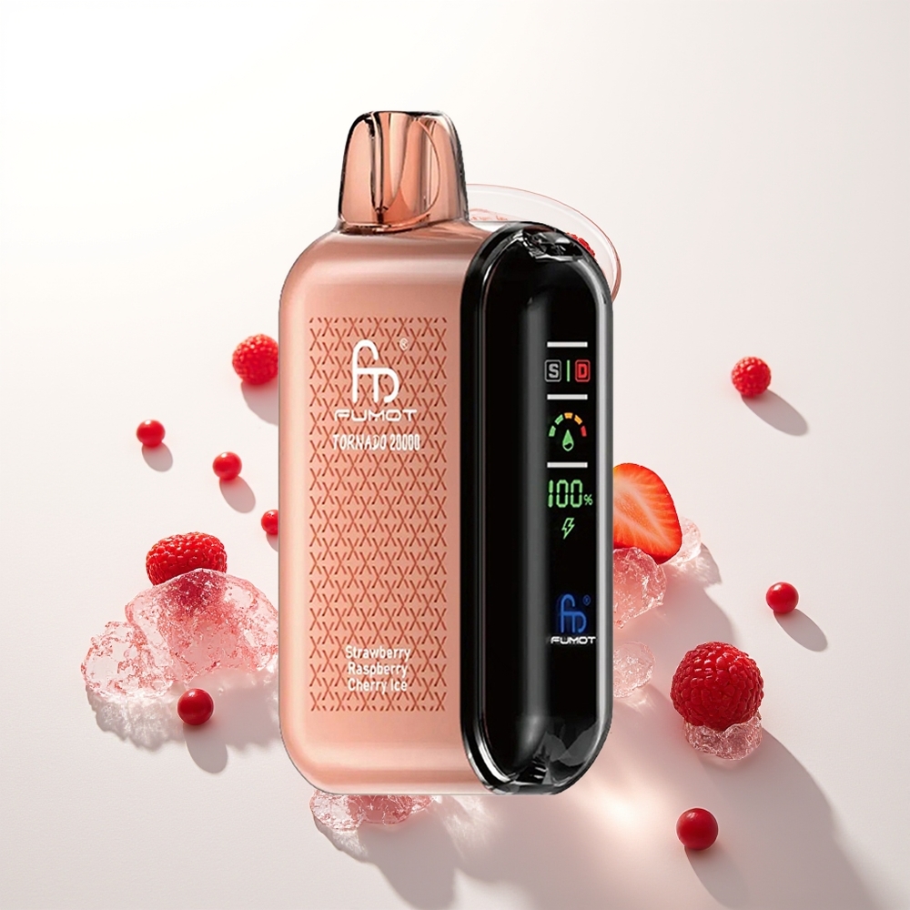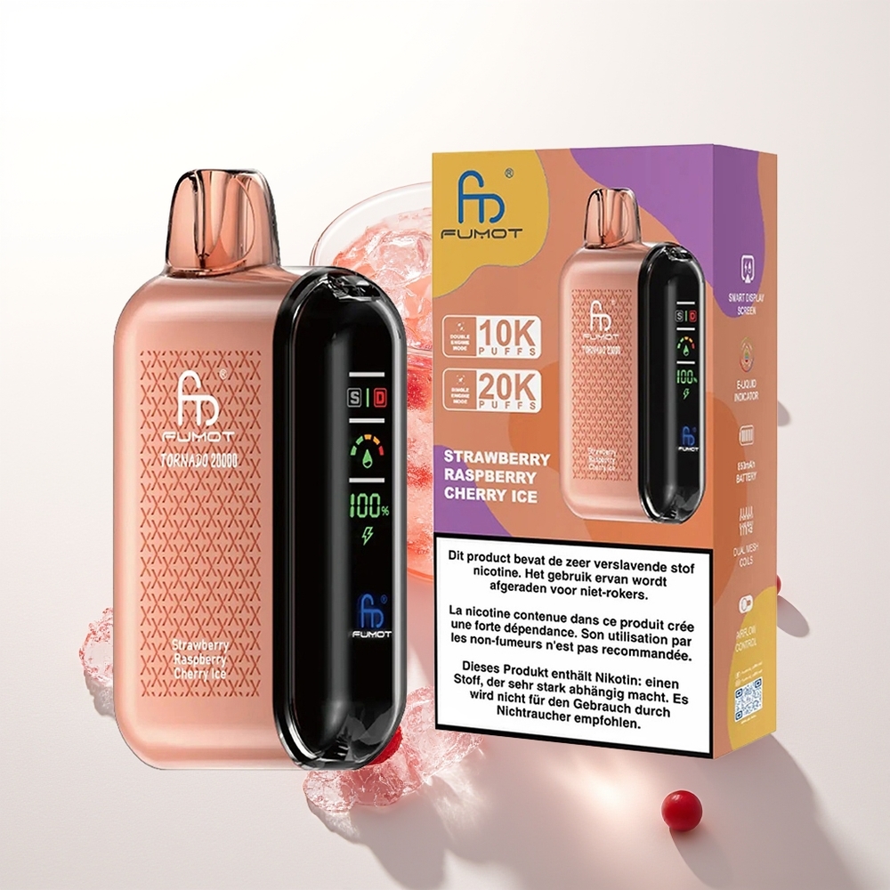 Fumot Tornado 20000 Braškių Aviečių Vyšnių Ledas su Dviguba Tinklelio Apvija ir Oro Srauto Kontrole
