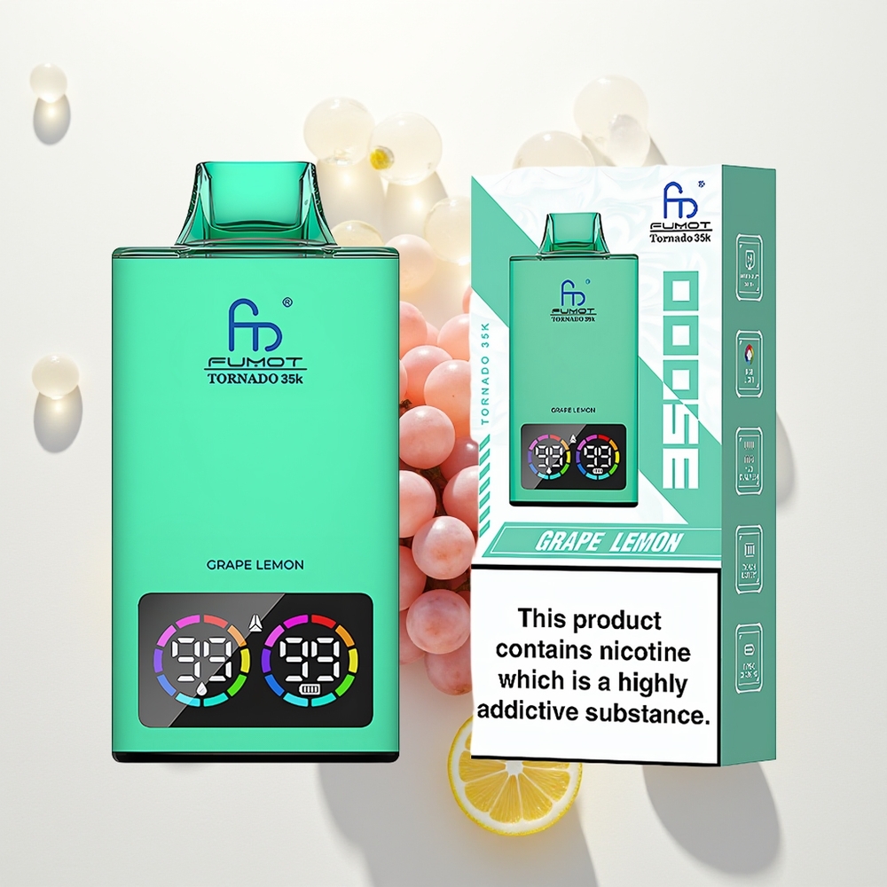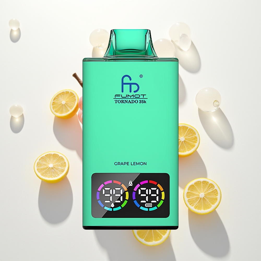 Fumot Tornado 35000 Vynuogių Citrina Su Dvigubu Tinklu ir RGB Šviesomis