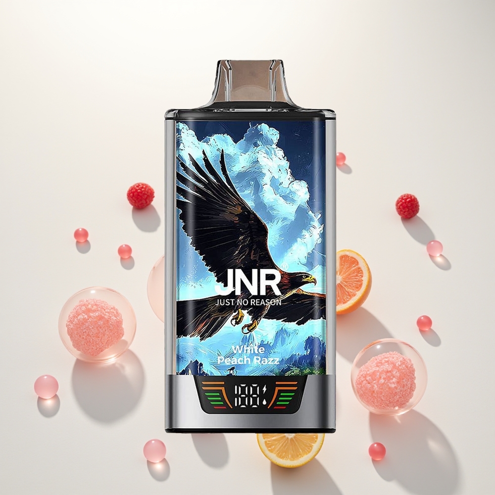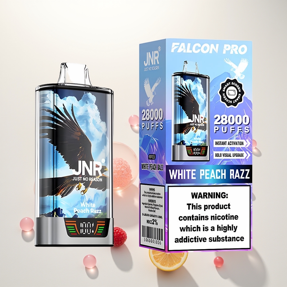 JNR Falcon Pro 28000 Baltasis Persikas Razz su 30ml ir USB Type-C