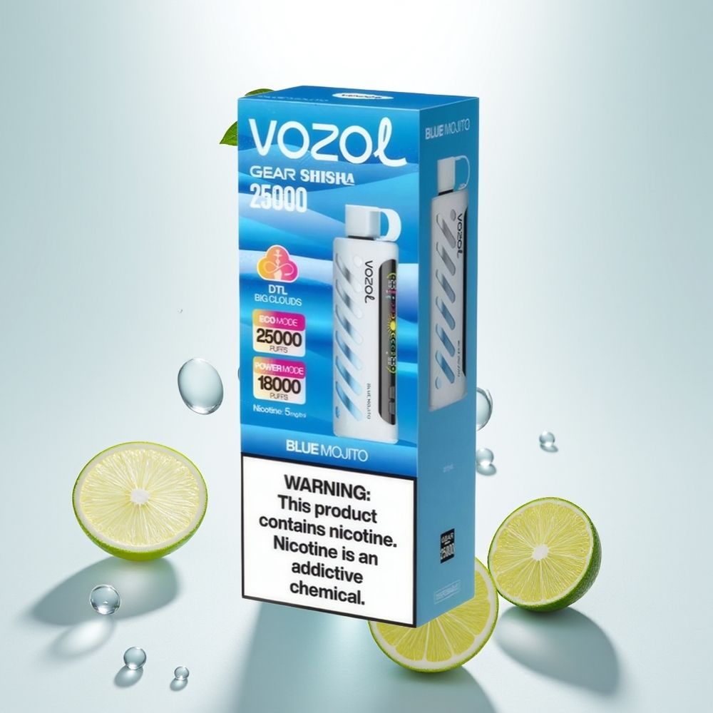 VOZOL Gear Shisha 25000 Mėlynasis Mojitas su Dvigubu Tinklu ir 5mg Nikotino