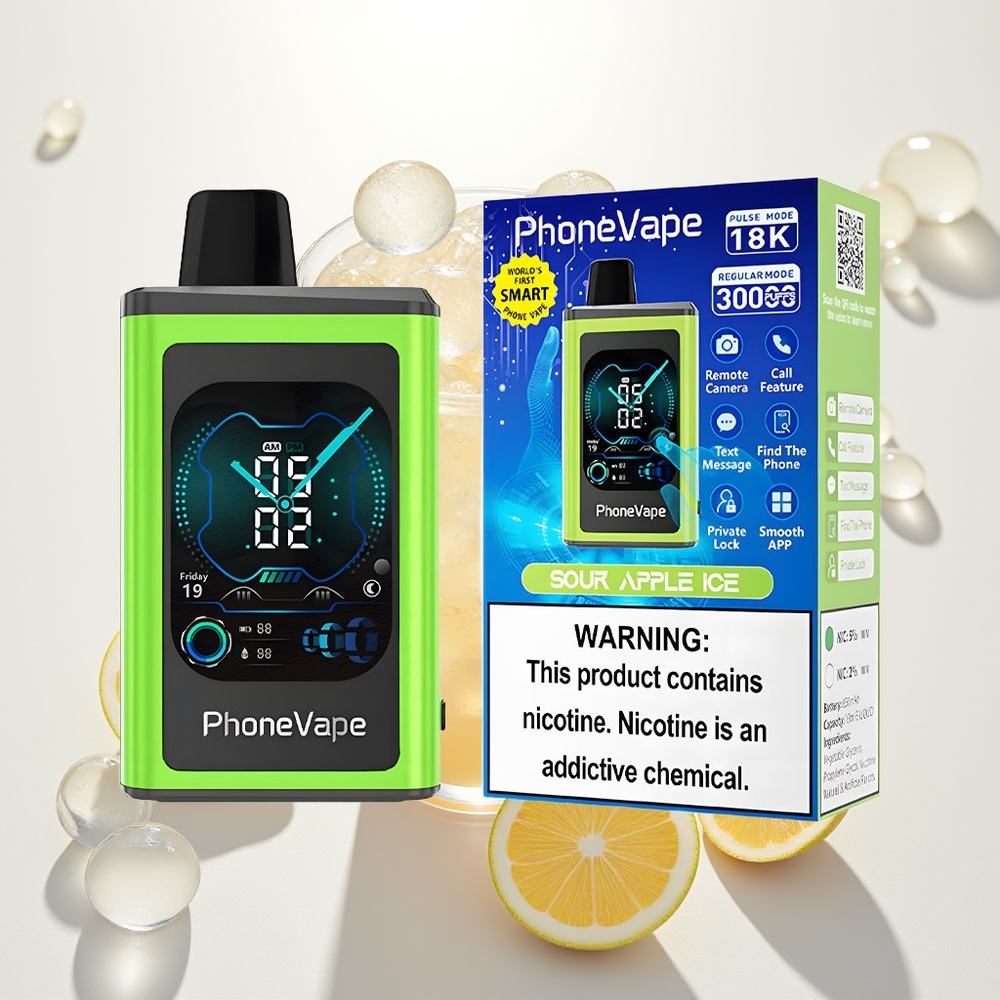 JNR PhoneVape 30000 Rūgštus Obuolys Ledas su Turbo Režimu ir Pilnu Ekranu