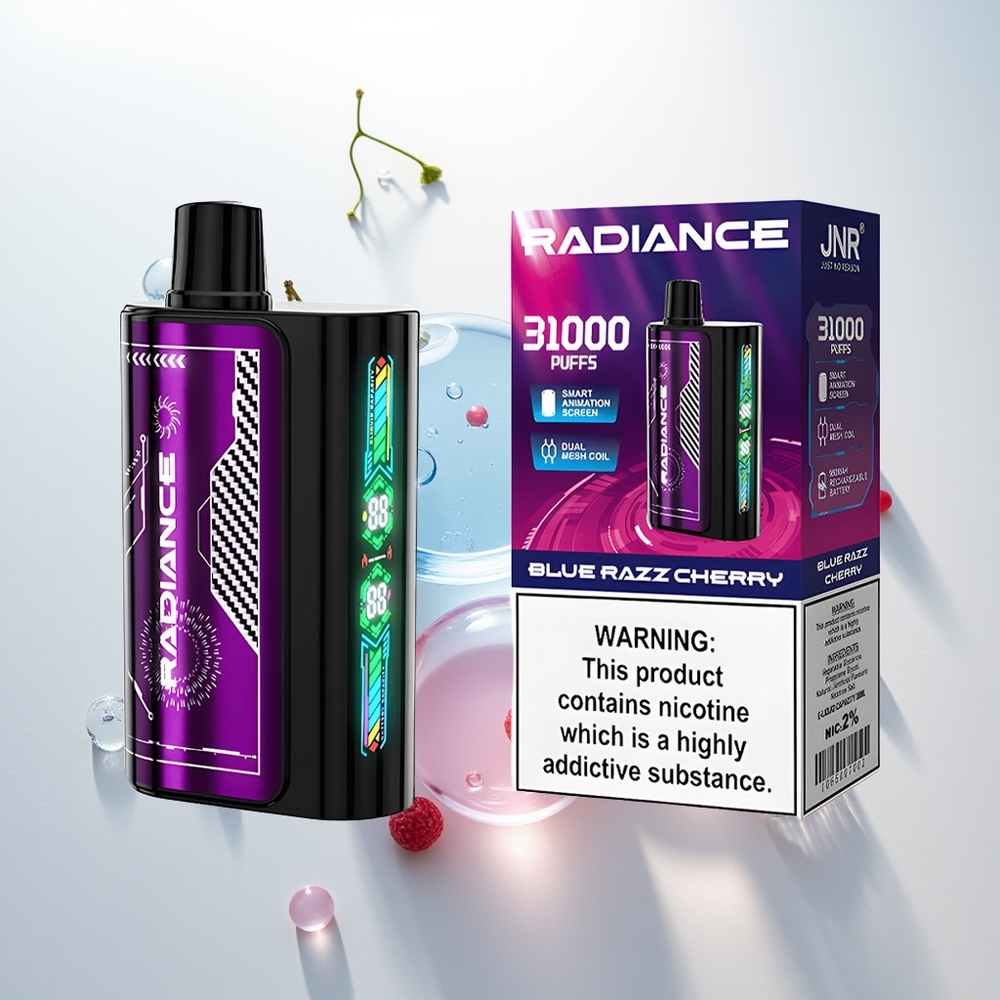 JNR Radiance 31000 Mėlynasis Avietinis Vyšnios su 28ml Skysčio ir Dvigubu Tinkleliu