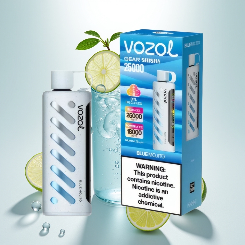 VOZOL Gear Shisha 25000 Mėlynasis Mojitas su Dvigubu Tinklu ir 5mg Nikotino